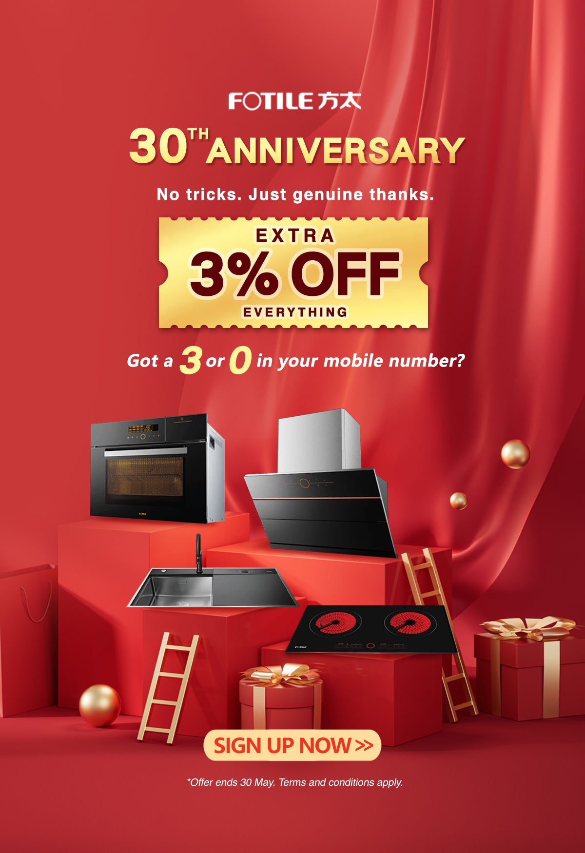 If your mobile number contains “3” or “0”, and you register via the form on or before 30 May, we will arrange for you to receive an additional 3% off discount code on your entire order, redeemable on all products on our official website. No quota restrictions apply.