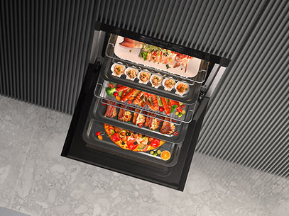 可同時蒸煮或烤焗多種食物。輕鬆準備家庭聚會、特殊場合或一週的大量菜式。