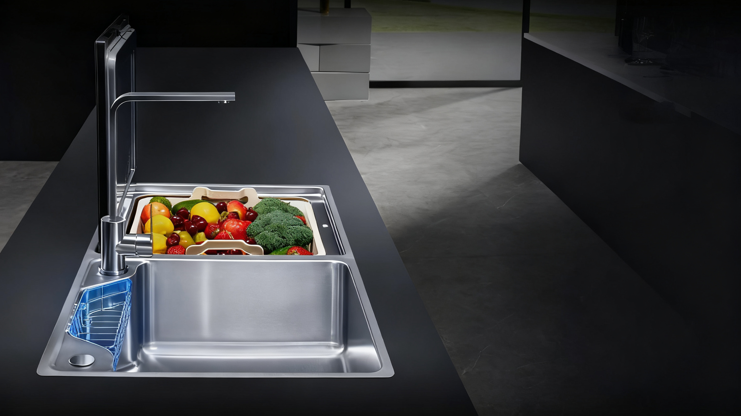 結合鋅盆、洗碗機與蔬果海鮮淨化功能,一機多用,節省空間並提升廚房效率。