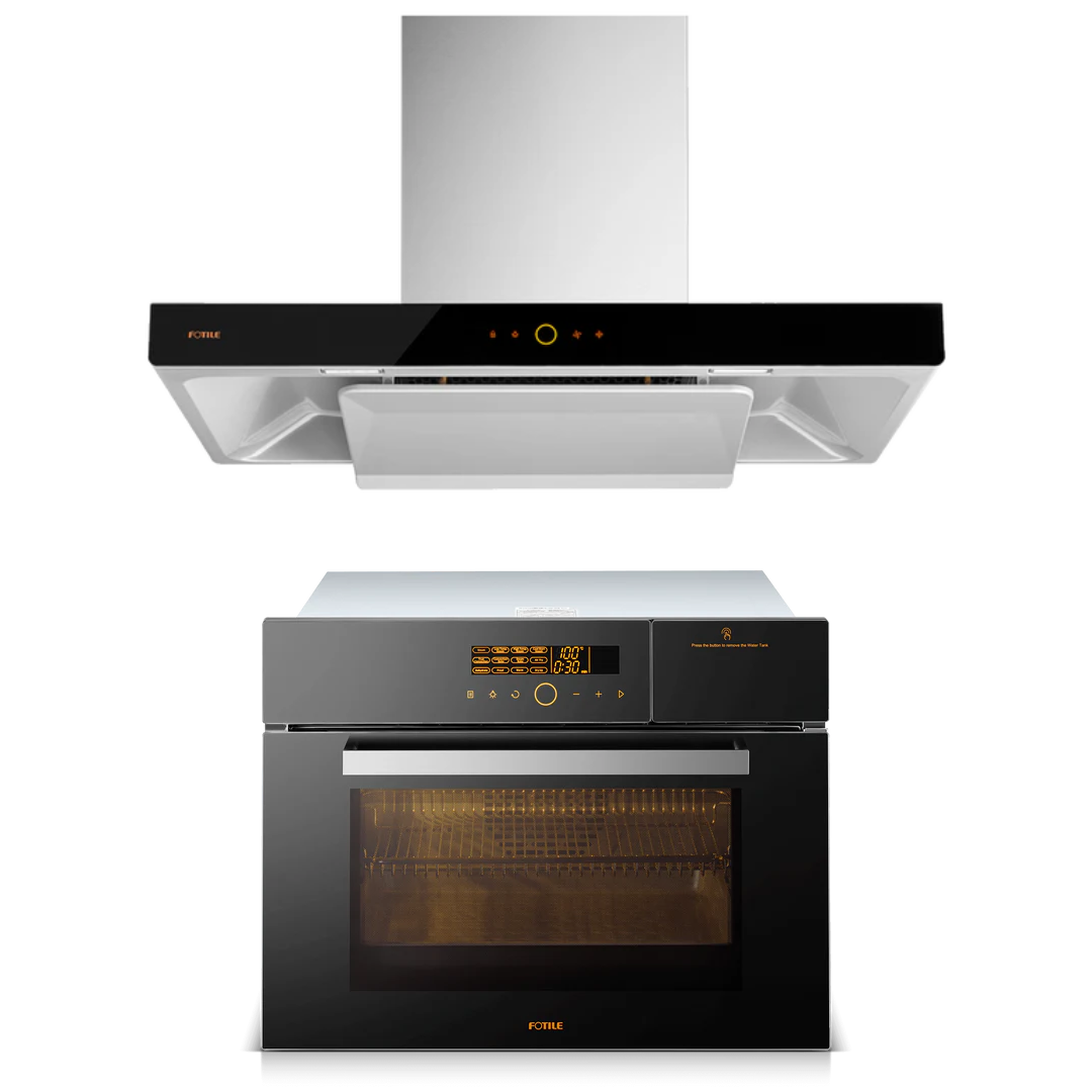 【轻松下厨2件组合】包含: 1) EMG9008-Y 90厘米抽油烟机x1件2) HZK-TS1 42公升蒸焗炉x1件